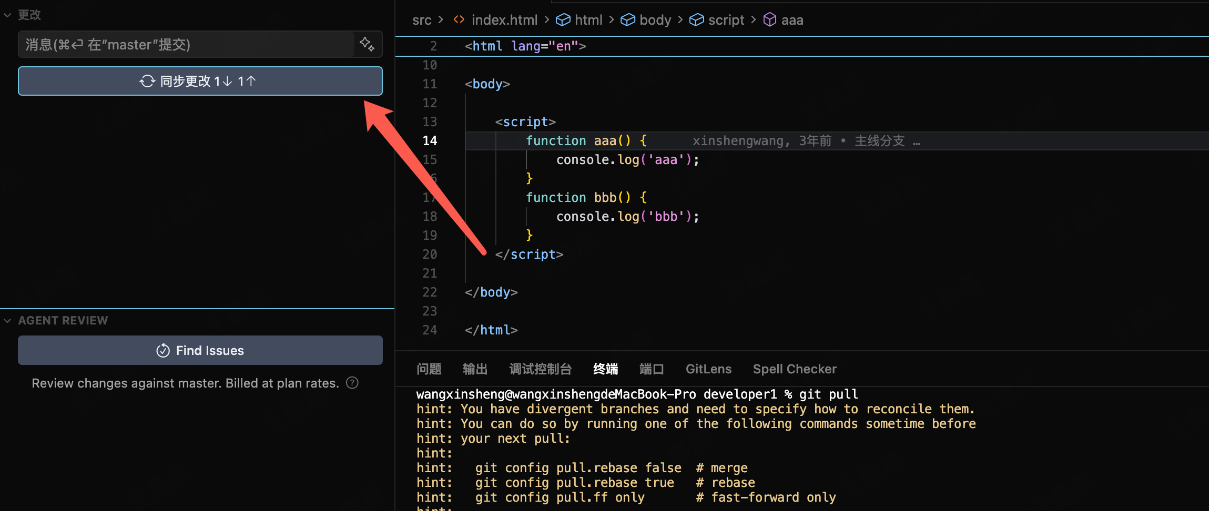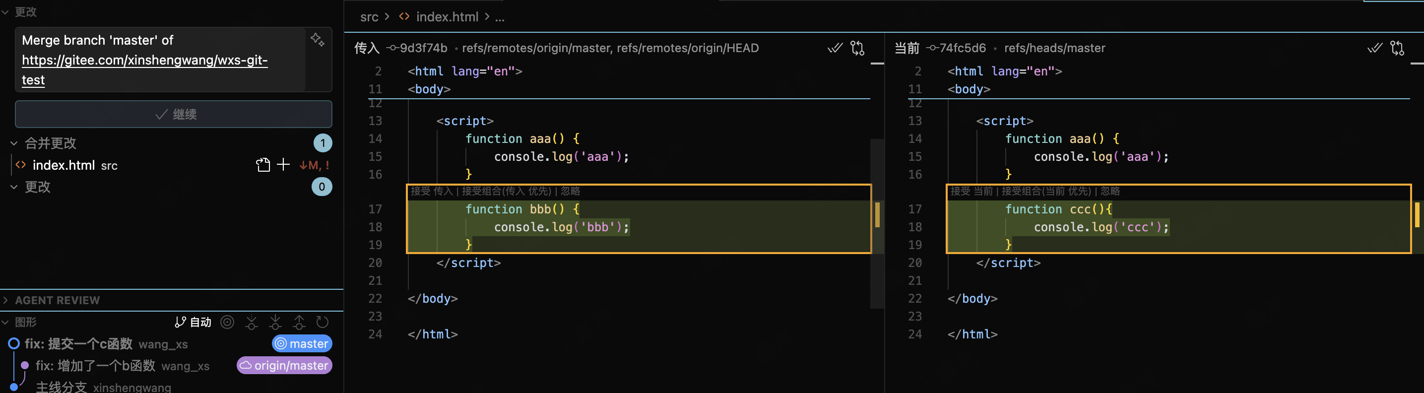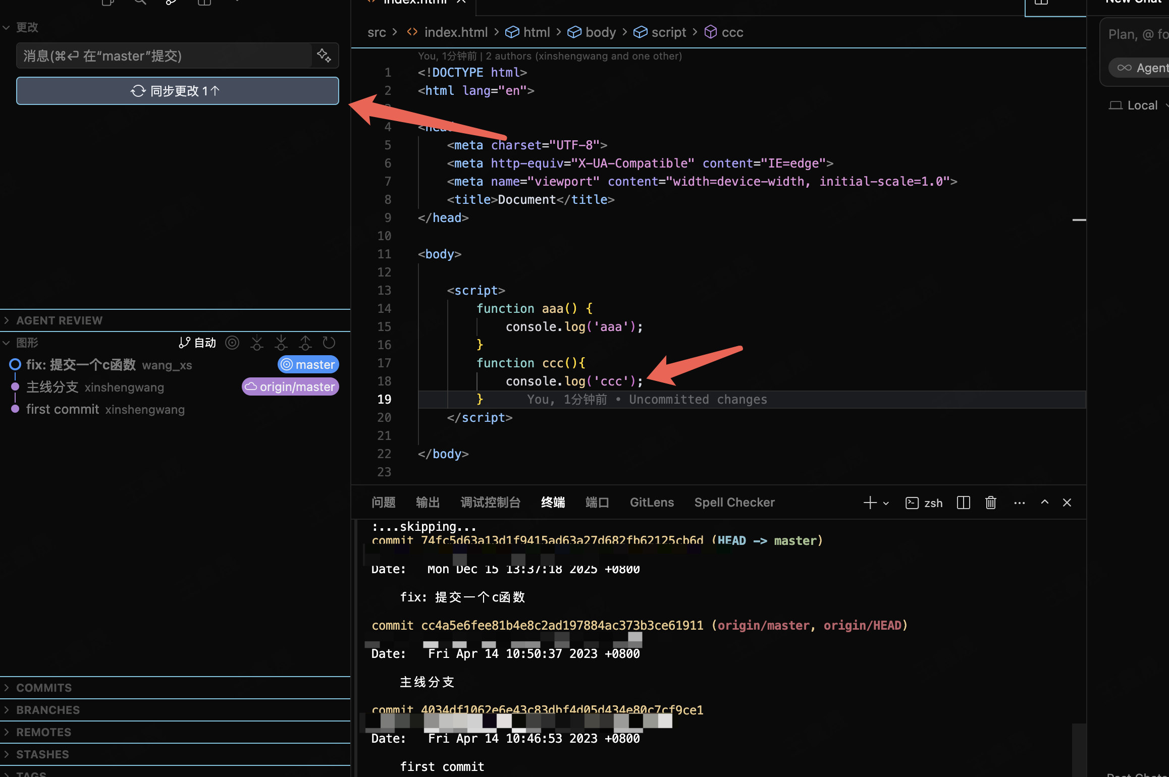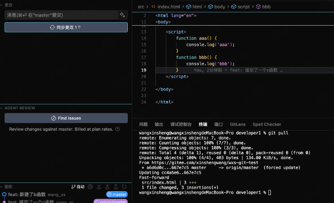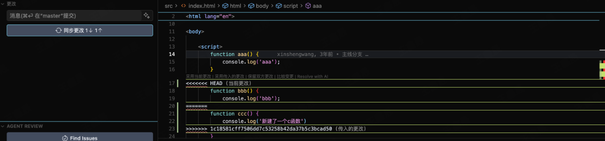 假设小王新建了ccc函数&推送到了远端