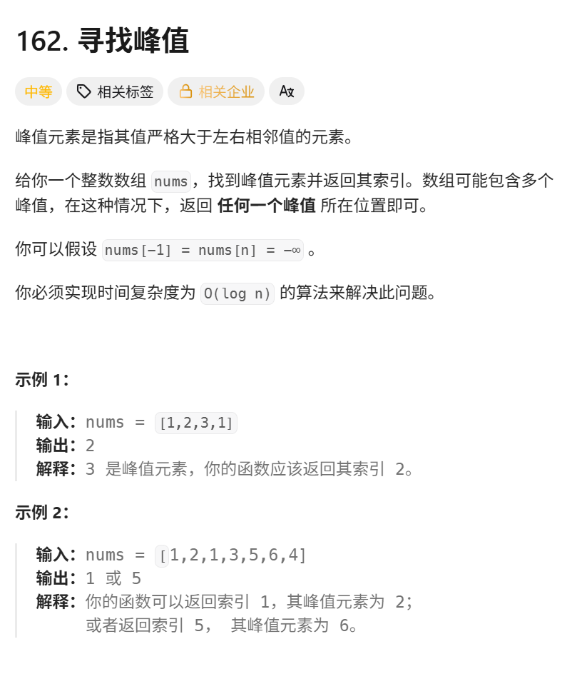 题目上给出的时间复杂度就暗示我们需要使用二分算法,我们发现相邻位置没有相同的数字.
