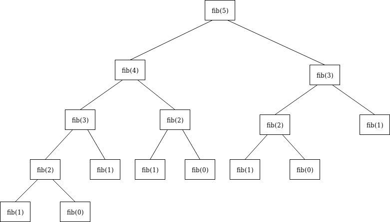 上图表示了 fib(5) 计算过程的递归树。