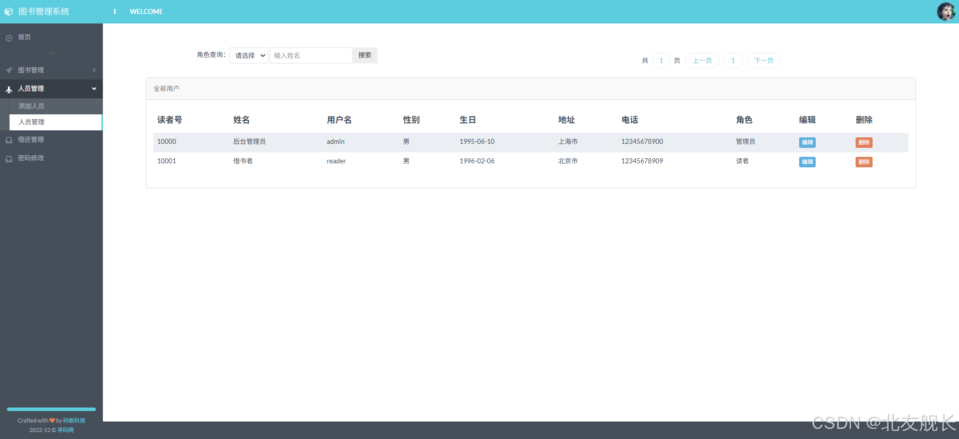 管理所有用户(添加读者 / 管理员账号、编辑信息、删除账号);