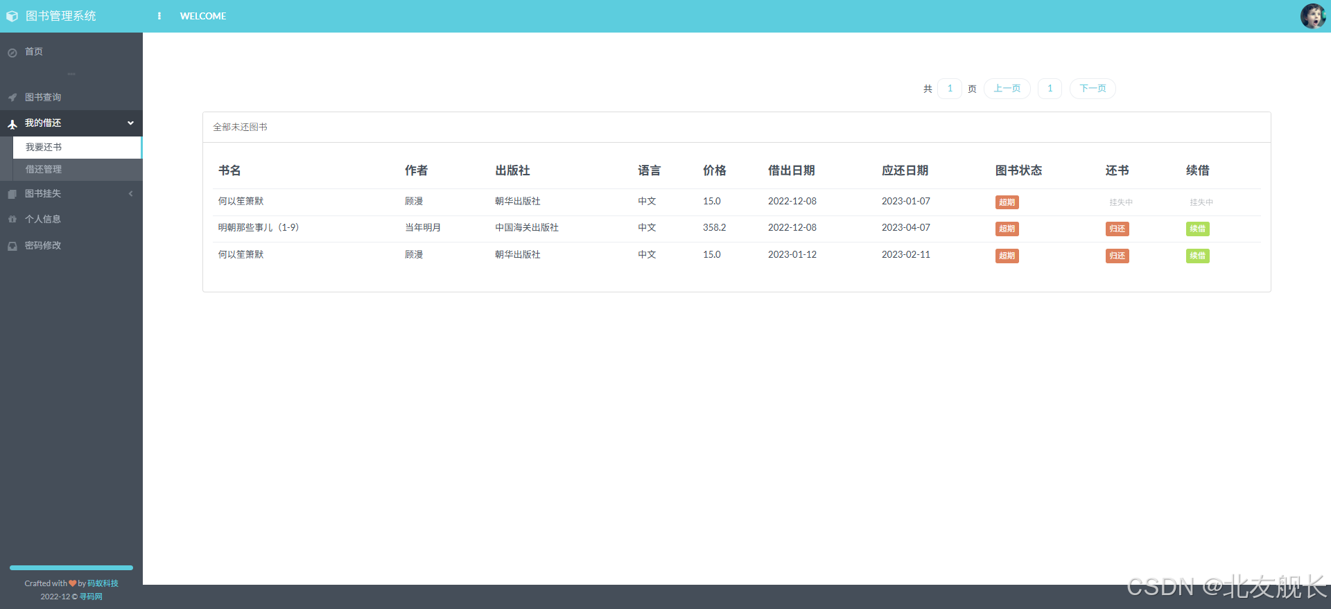 未还图书:查看个人逾期 / 待还图书,执行 "归还""续借" 操作;