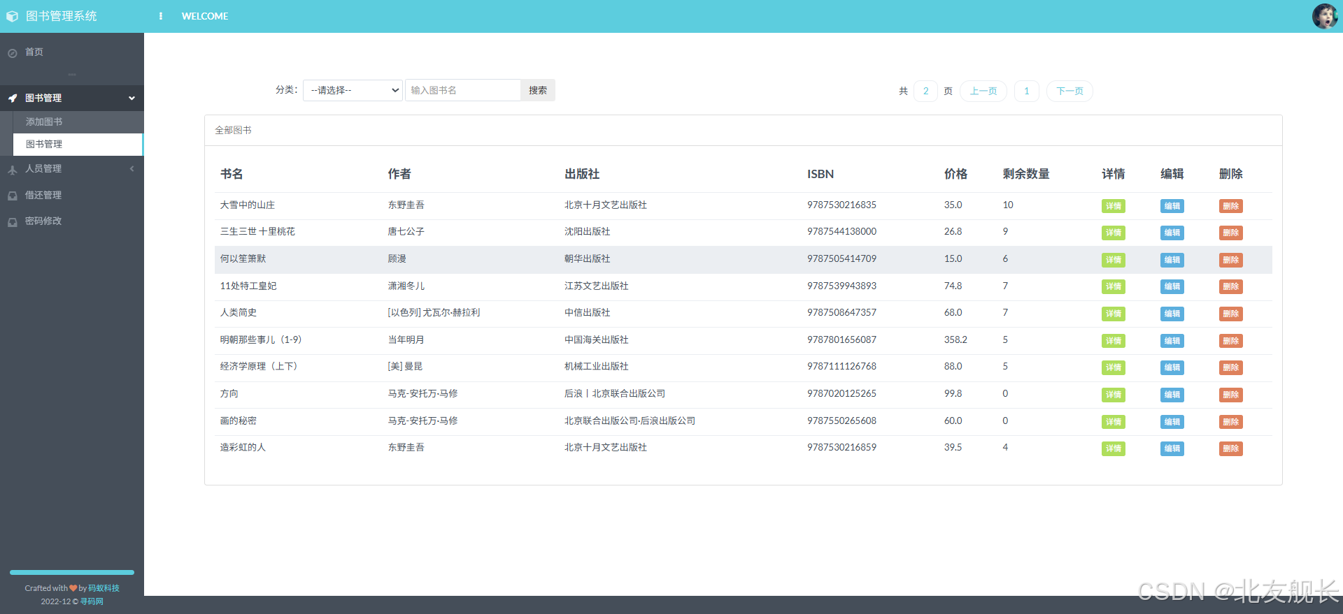 库存监控:通过图书列表的 "剩余数量" 字段,实时掌握图书库存状态(剩余数量为 0 时标记为 "已空")。 - 用户管理
