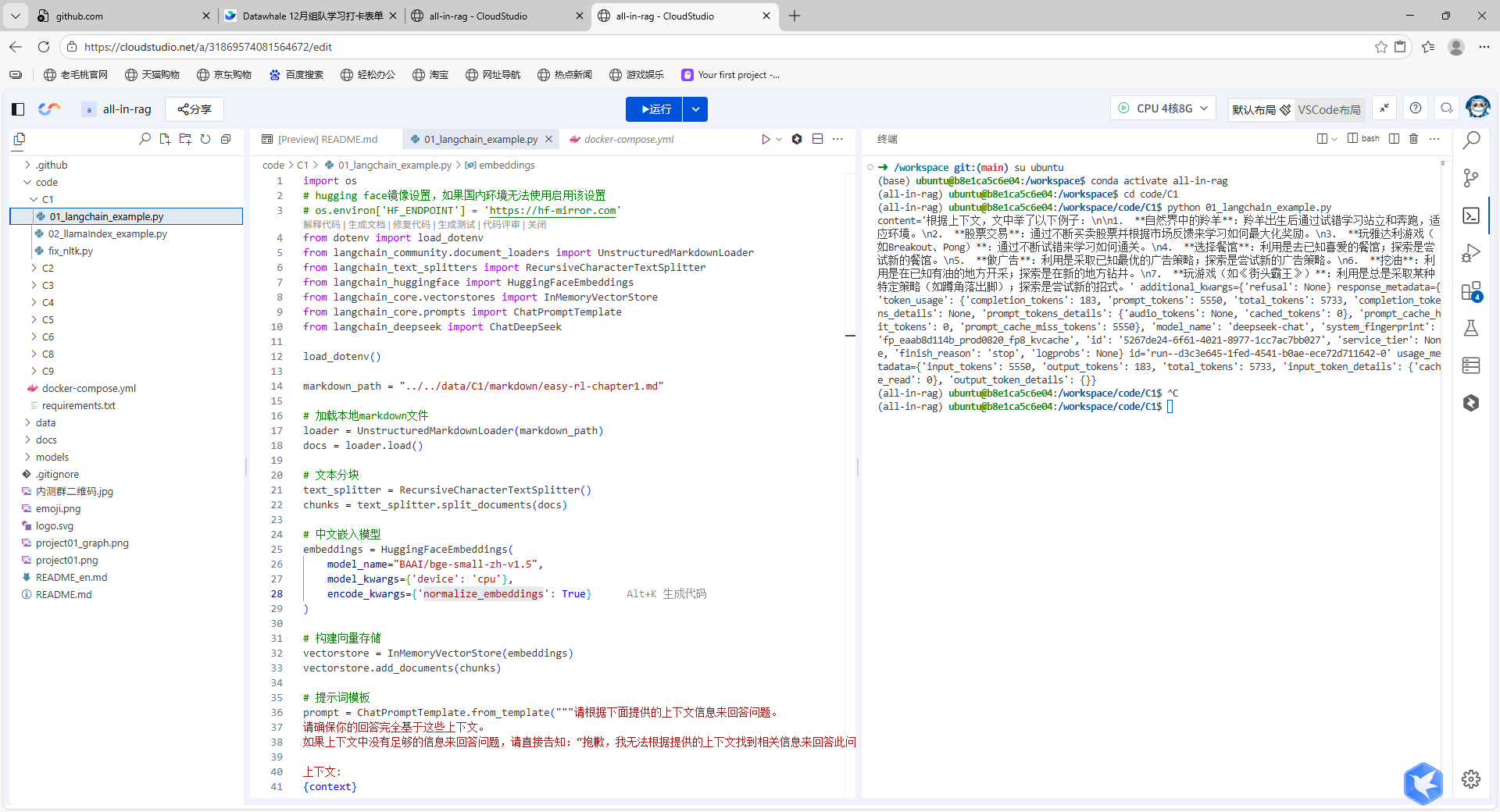 通过RAG demo 实现我的第一个RAG系统,主要是利用提供的"01_langchain_example.py"代码来执行