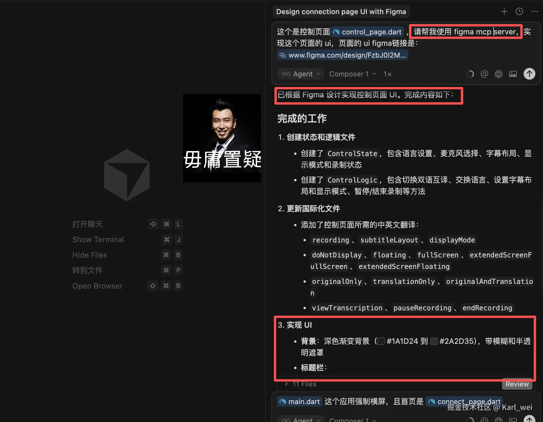 对于前端程序员,UI 这类低级工作,完全可以交给 Agent 去编写。比如:公司的设计师用的是figma,我们只需要在 cursor 中装上figma mcp,然后 figma 账号申请开发者权限,就能自由的让 AI 帮我们写好代码。亲测还原度 85%+