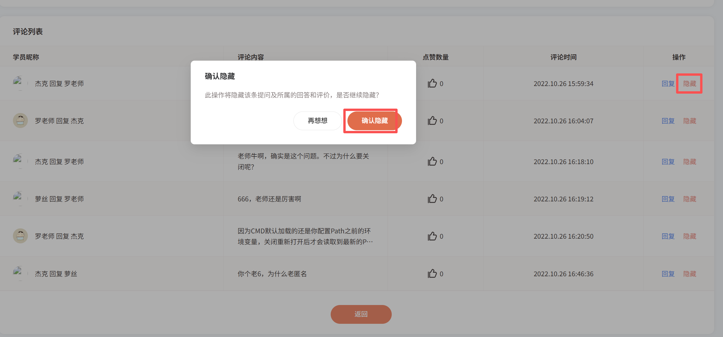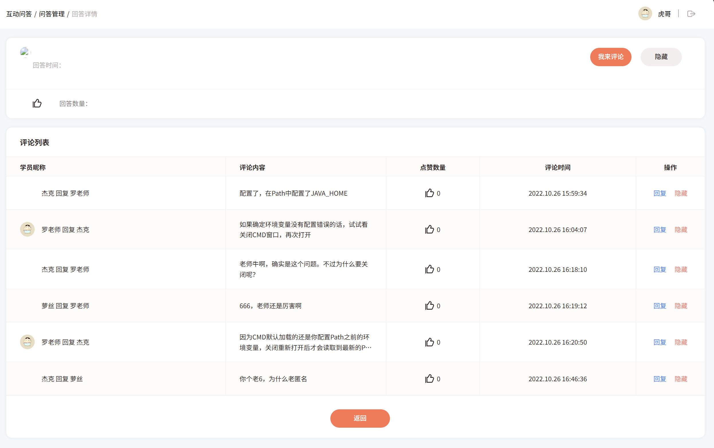 | 4 | 隐藏或显示指定回答或评论(管理端) |