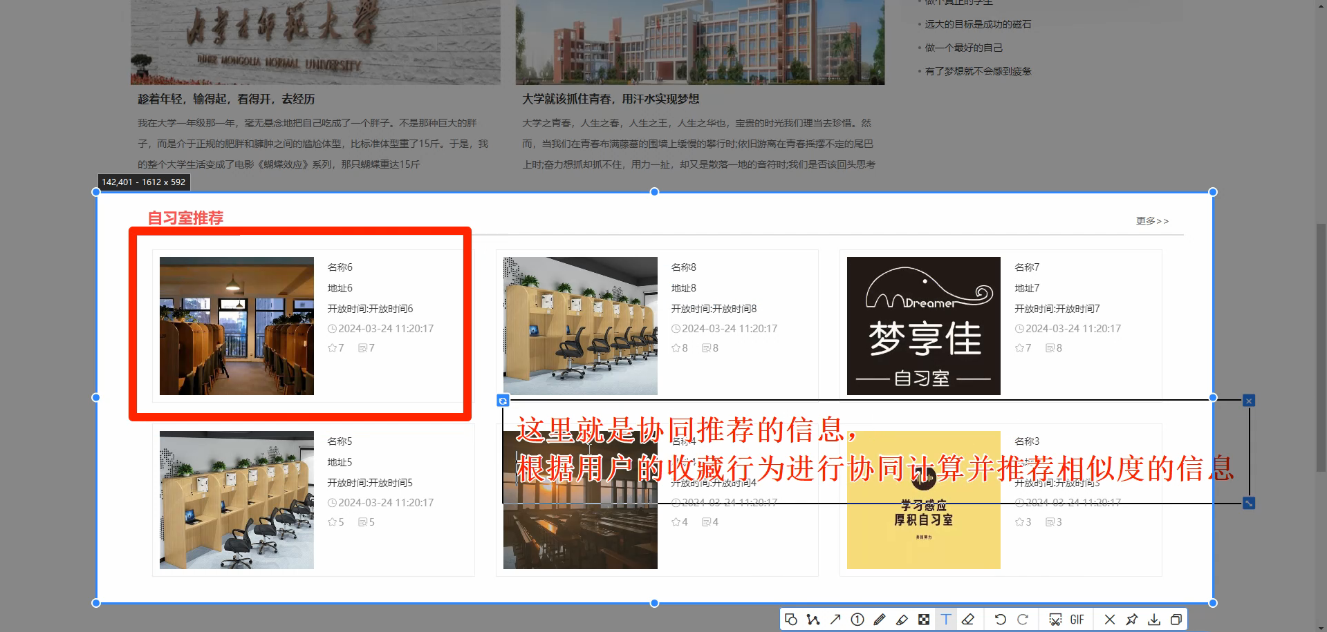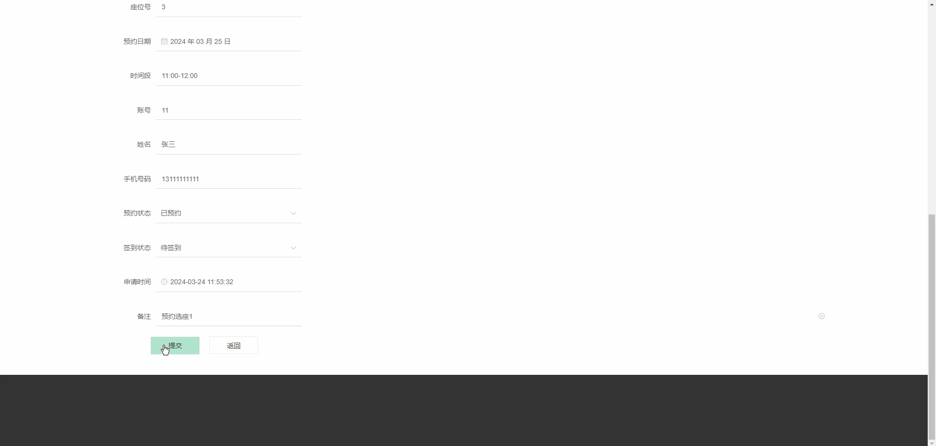 - 数据库设计:MySQL 8.0构建6张核心表(用户表、座位表、预约记录表等),索引优化查询效率(如预约记录表按时间字段建索引后查询速度提升80%);
