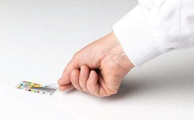 根据样品的pH值,与试剂纸共价键结合的特殊指示剂会改变颜色。