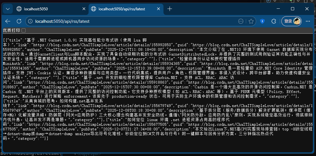 经测试,基于 Minimal API 接口的 RSS 订阅成功!