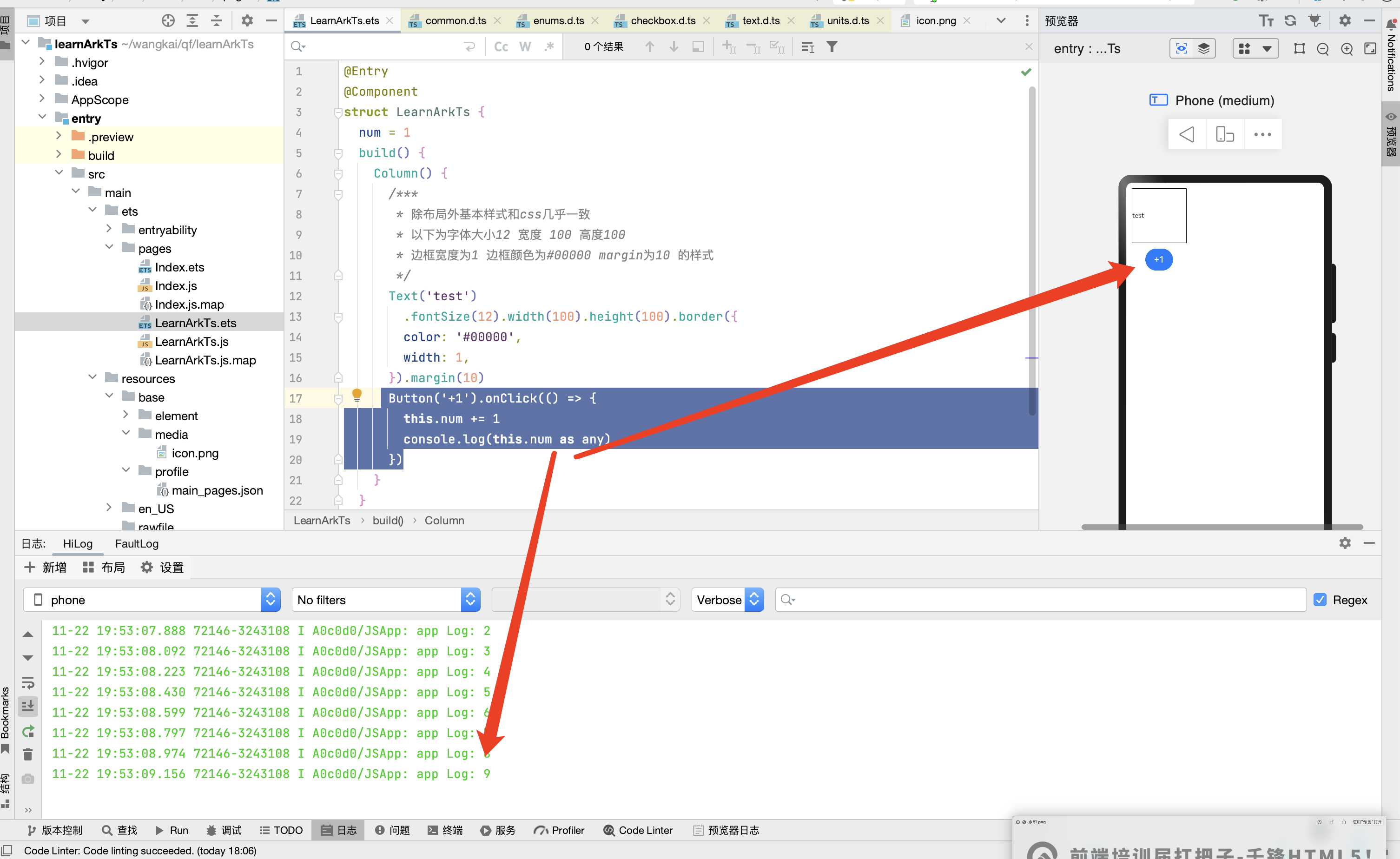 // Button('this调用函数的细节').onClick(this.onTest2())