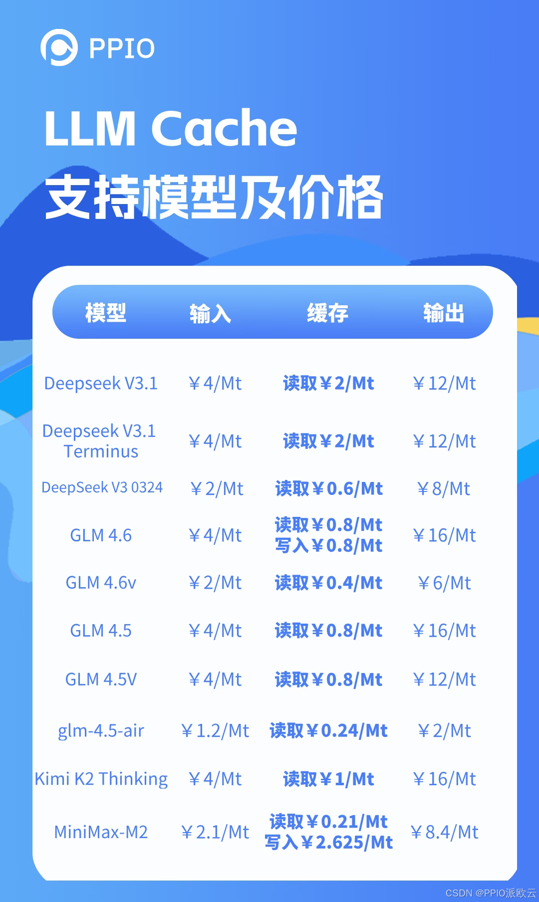 当前PPIO的 Prompt Cache 功能已支持以下主流大模型,前往PPIO官网即可体验。
