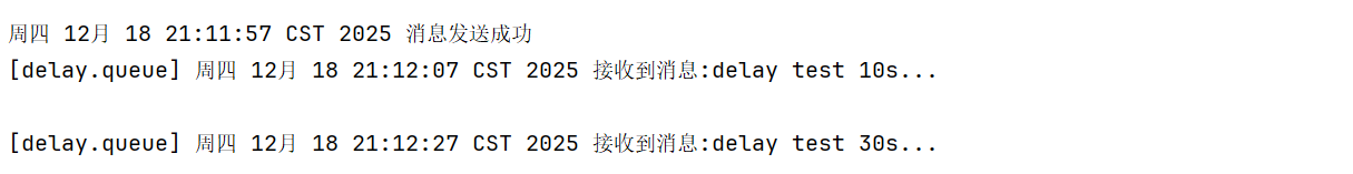 通过控制台也可以发现,这两条消息都是30s后才被消费的: