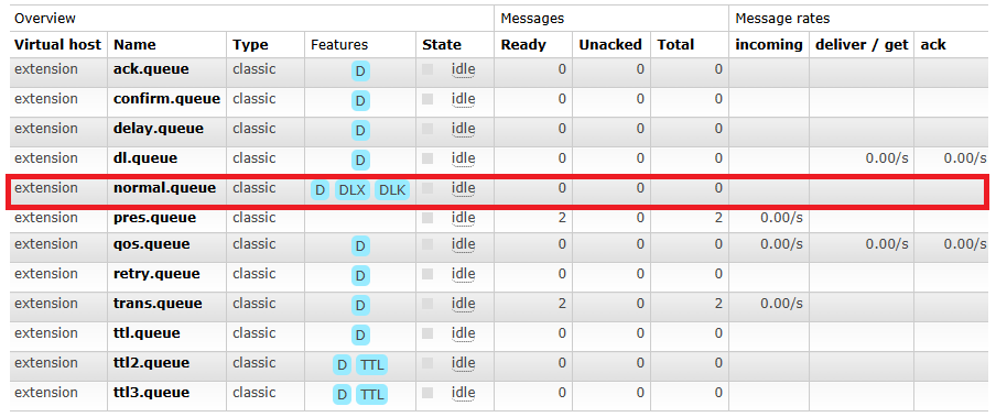 先删除掉我们原来用于测试死信的normal队列(不删除原队列而随意修改队列属性会报异常!!!):