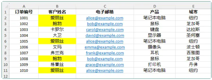 # 使用条件格式高亮指定区域中的重复值