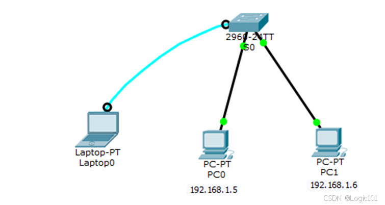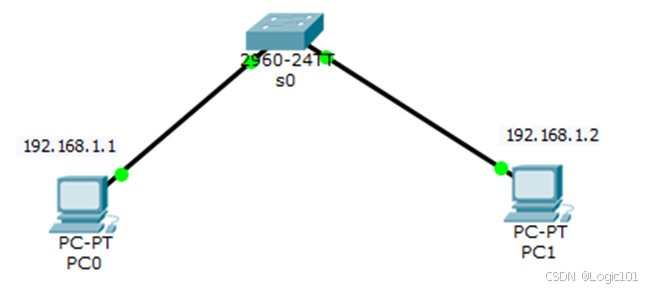 - 用直通线将PC0与PC1与交换机进行连接.