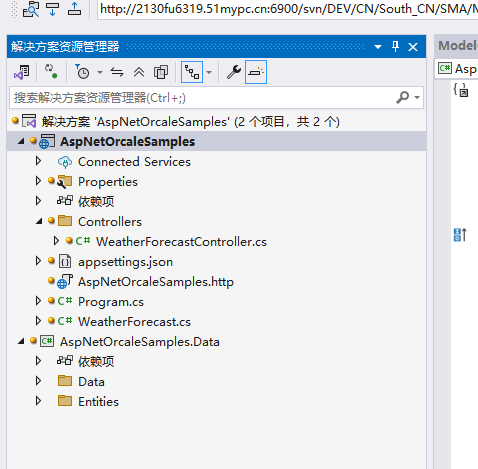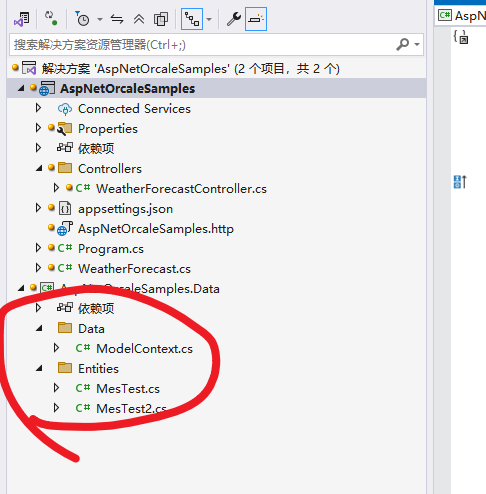 目标是将Orcale数据库的表生成实体到AspNetOrcaleSamples.Data下
