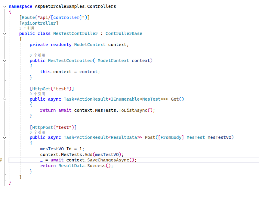 -StartupProject AspNetOrcaleSamples:指定启动项目,通常是 Web 项目,用于读取配置和设计时服务。