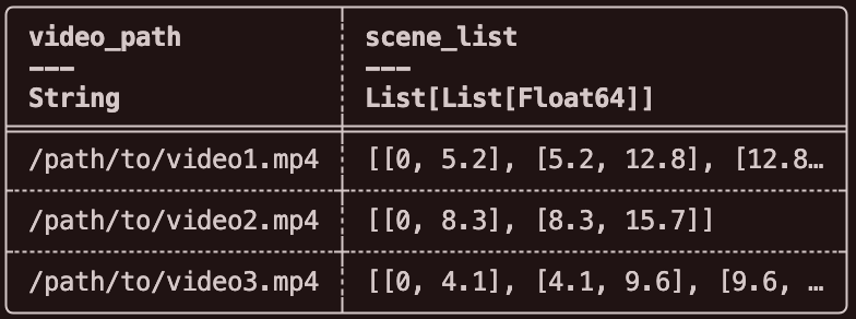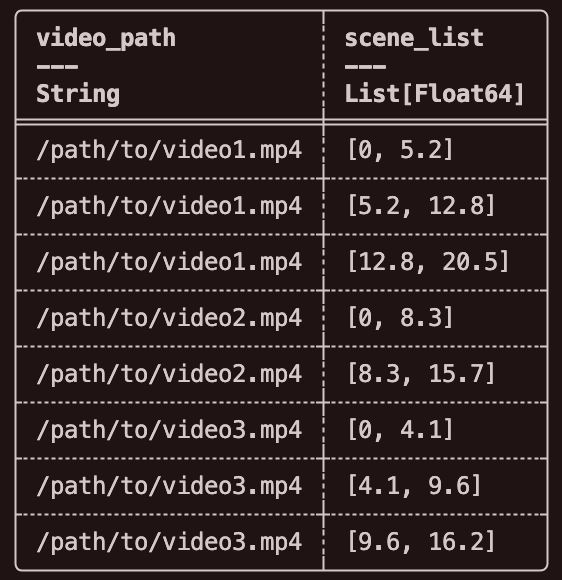 在场景检测阶段,我们将原始的视频级数据展开为场景片段级的数据,使每个场景片段都成为独立的数据行。随后,借助 Daft 的分布式任务调度和并发执行能力,实现大规模的并行视频切分操作。