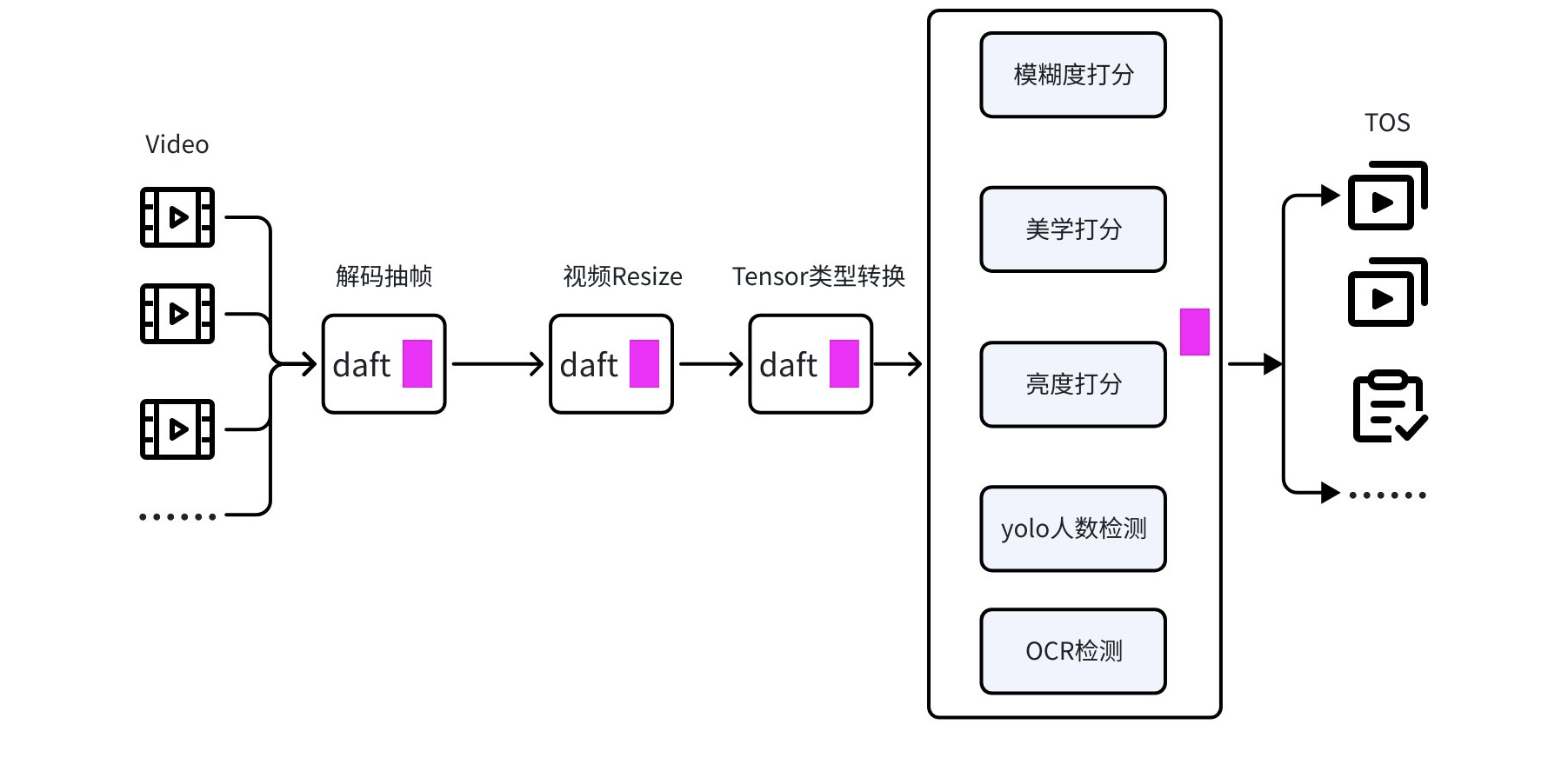 调用模型对视频做模糊度、美学等打分,过滤不符合条件的视频