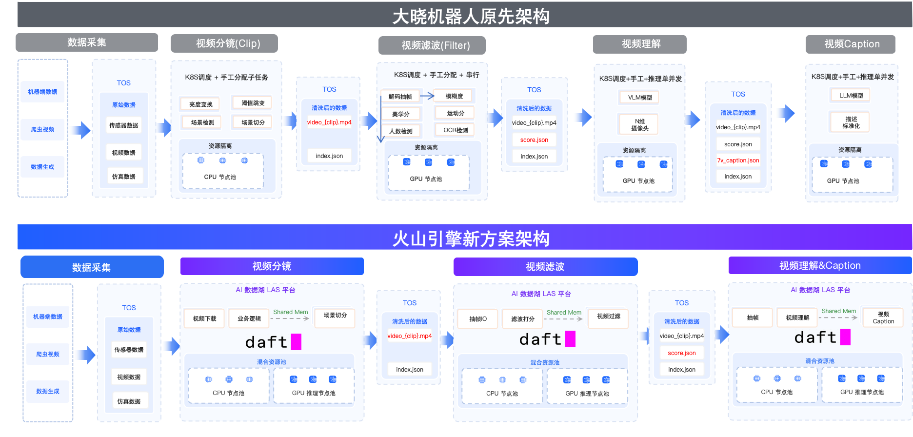 同时,"大晓机器人"也以积极态度拥抱行业合作,与火山引擎开展联合探索,进一步提升在大模型领域的创新力:如结合了火山引擎多模态数据湖解决方案的开悟世界模型3.0,可以有效解决传统单机多脚本模式的链路分散、I/O负载重、资源利用率低、稳定性差、扩展不足等问题。