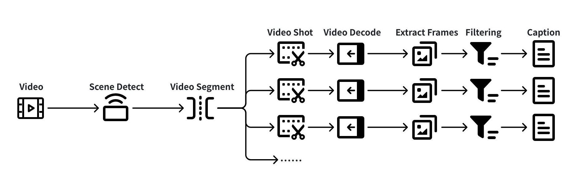切分后的每个 clip 都是一个独立的视频文件,具有清晰的语义边界,也成为后续"解码抽帧 → 质量过滤 → Caption"的基础输入单元。