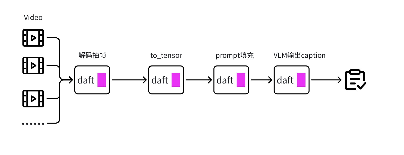 随后,借助 Daft 的分布式任务调度和并发执行能力,实现大规模的并行视频切分操作