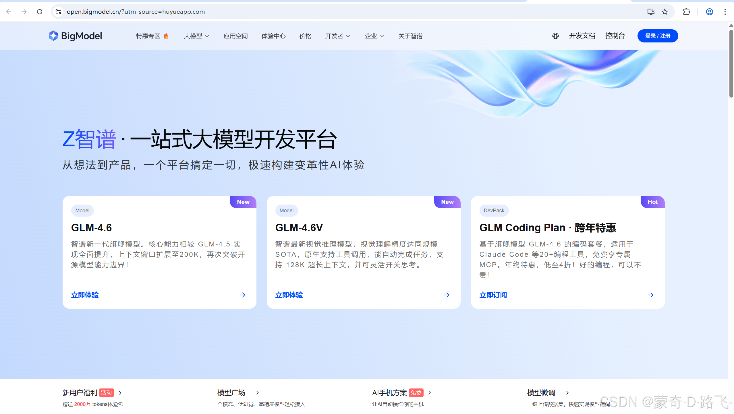 智谱官网:https://open.bigmodel.cn/?utm_source=huyueapp.com