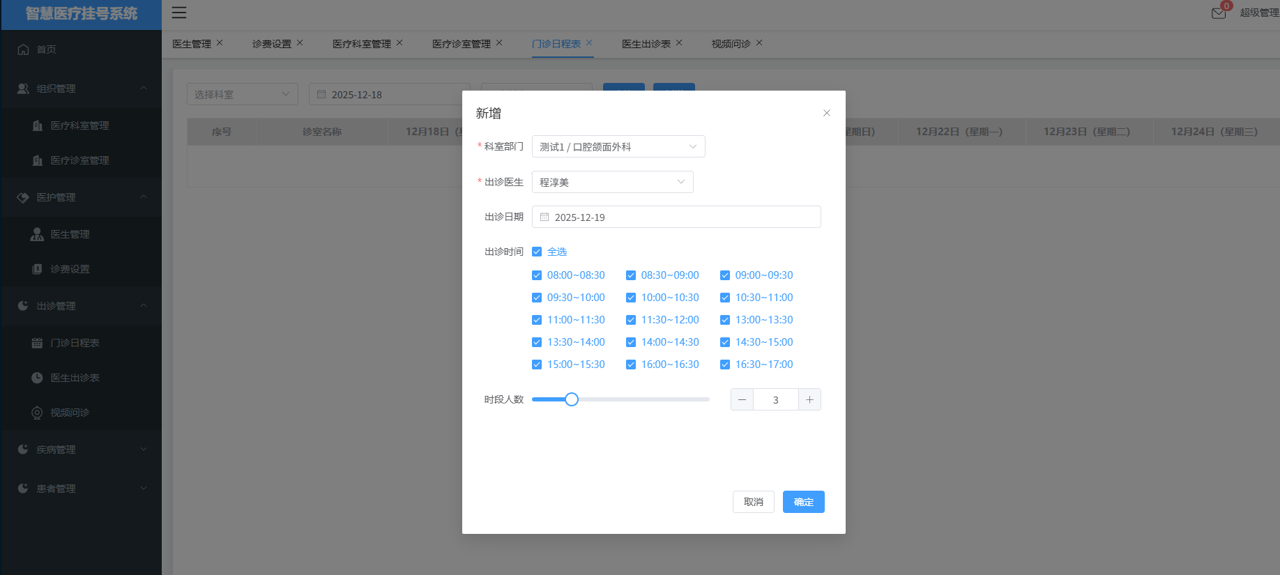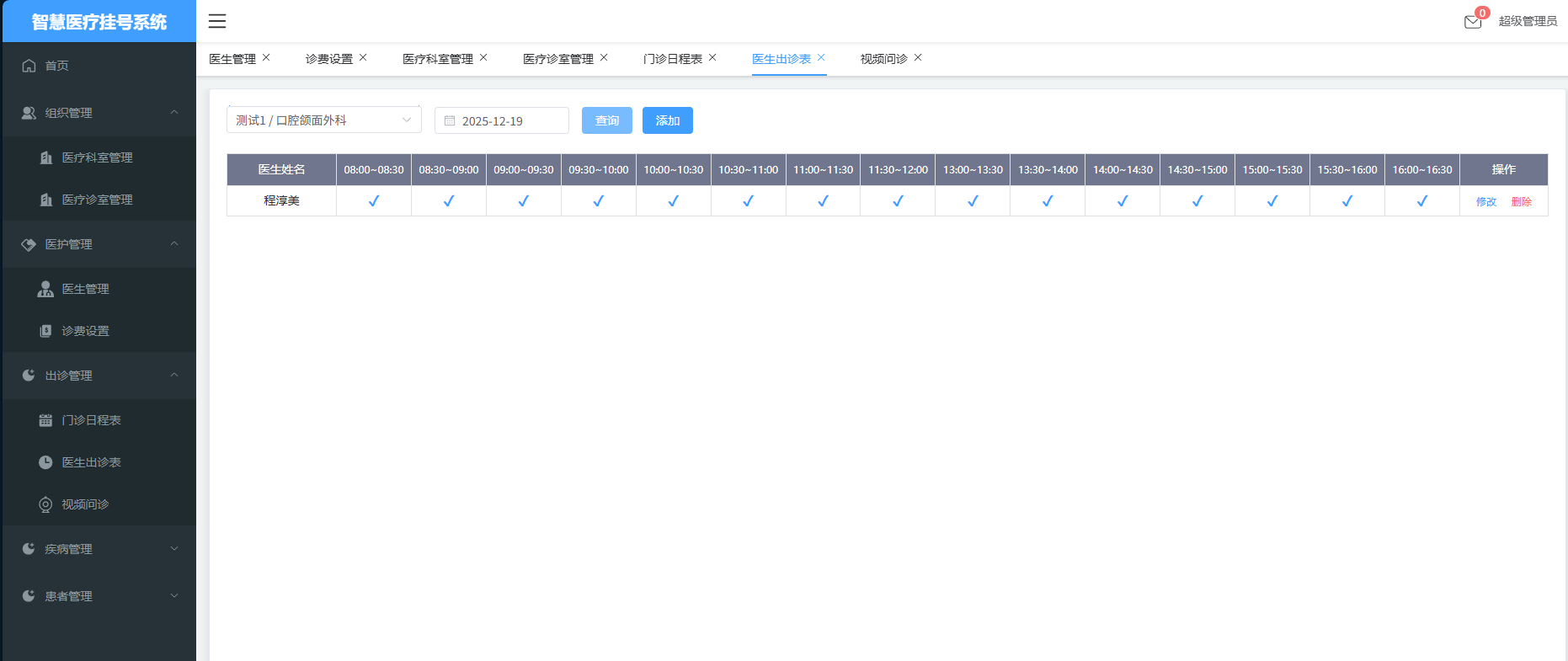 5. 门诊日程表
