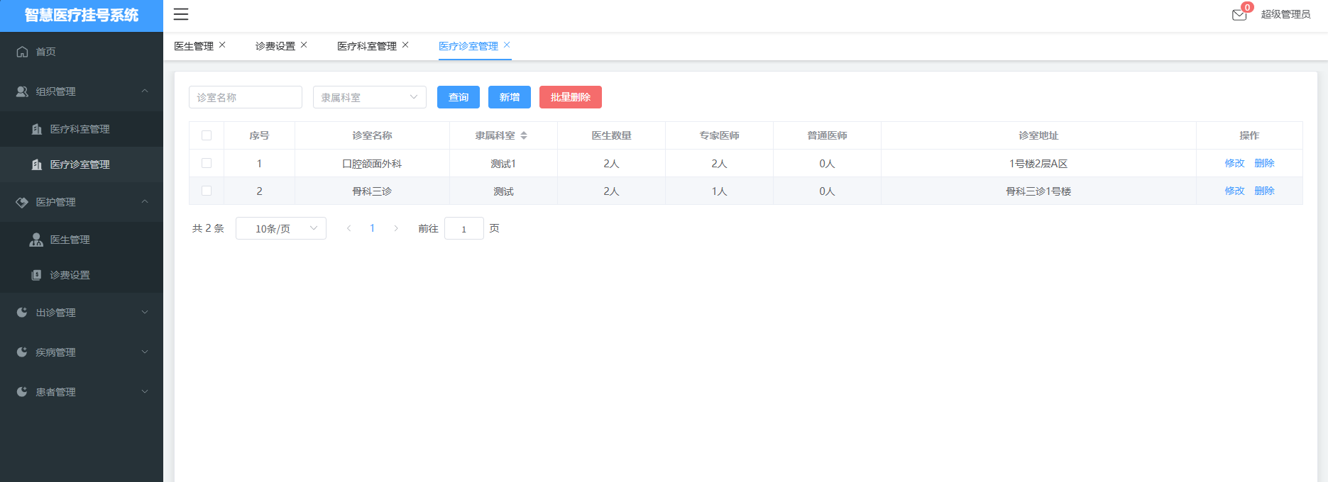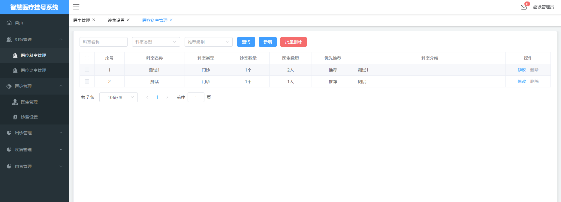 2. 医疗科室管理