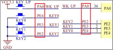 KEY0 - PE4;KEY1 - PE3;KEY2 - PE2;KEY_UP - PA0