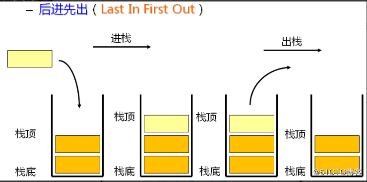 后进先出,故名思意,就是先进去的数据后出来,而后进去的数据先出来