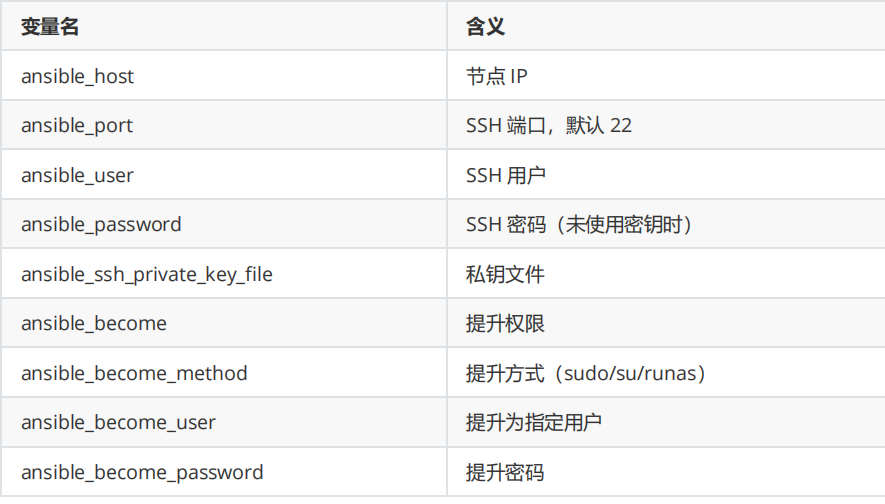 [二、Inventory 主机清单与变量配置](#二、Inventory 主机清单与变量配置)