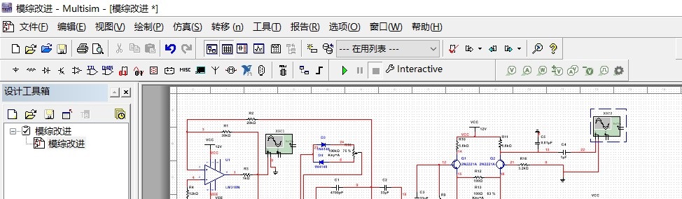 在 Multisim 里搭建积分电路,调整好电阻和电容的值,就能得到满足要求的三角波输出。
