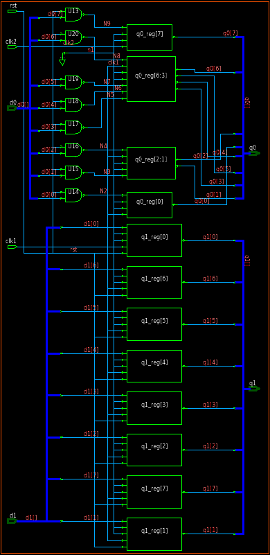module test (d0, d1, rst, clk, q0, q1);
