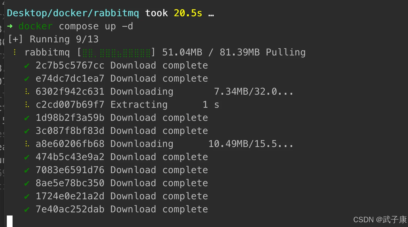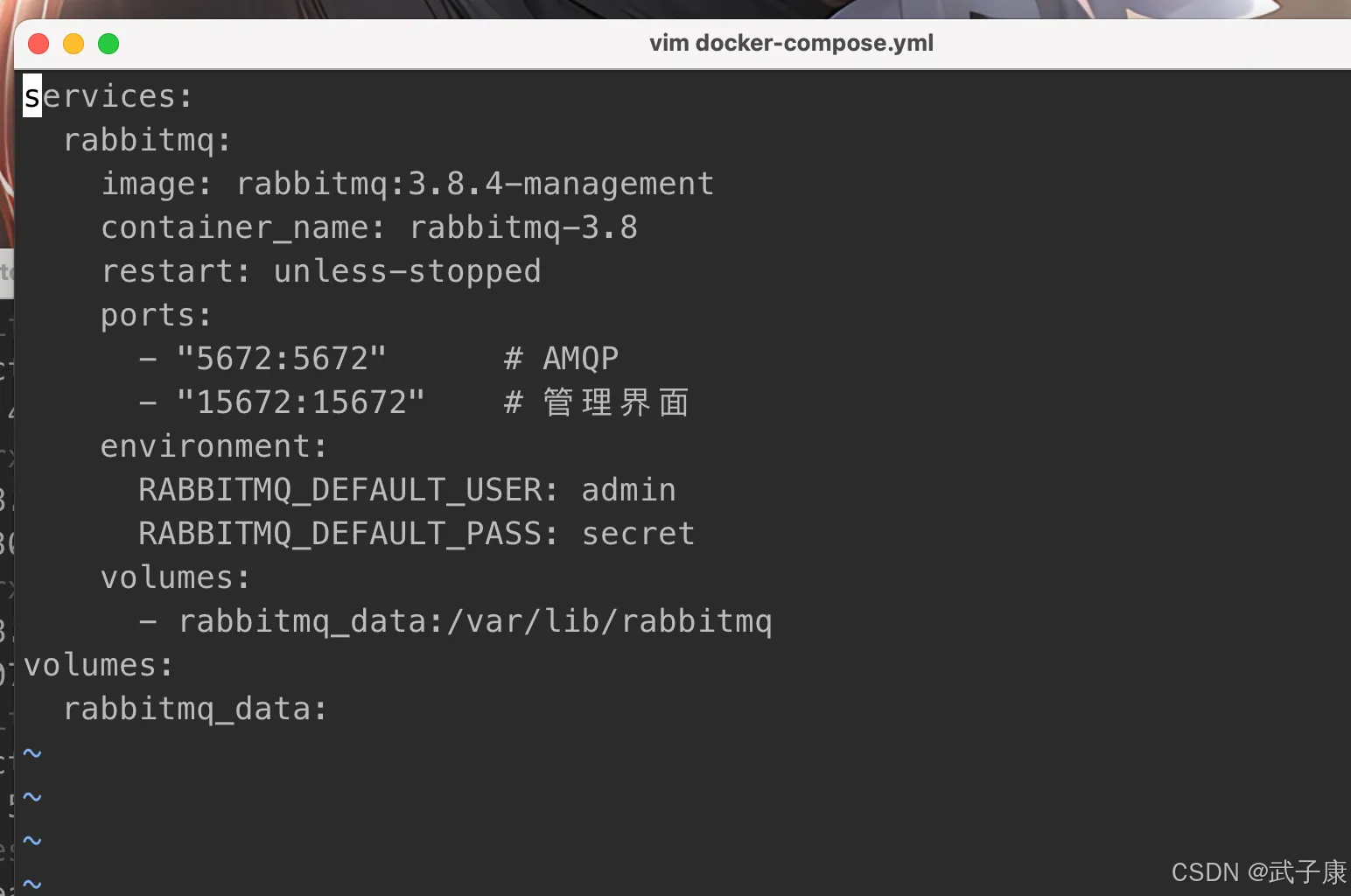 保持 volumes: rabbitmq_data:/var/lib/rabbitmq;不要频繁改卷名。 |