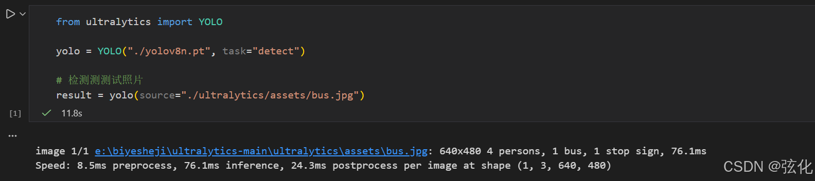 处理对象:路径为E:\biyesheji\ultralytics-main\ultralytics\assets\bus.jpg的图片,尺寸为 640×480;