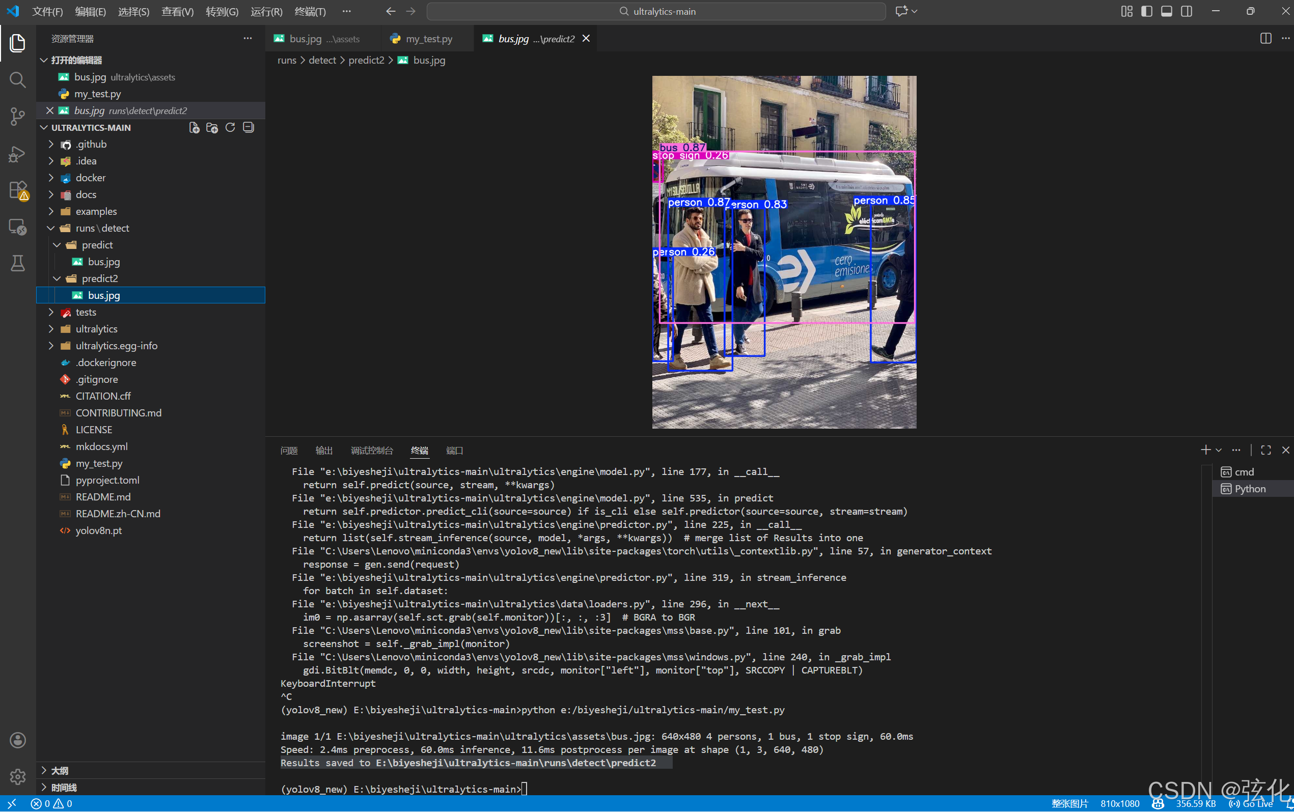 激活yolov8_new环境后,直接用环境内的python命令运行脚本(无需指定系统 Python 路径):