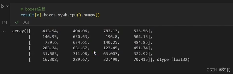 在 YOLOv8 预测返回的Results对象中,result.boxes存储的是当前图片所有检测目标的核心检测框信息,是多个Box对象的集合,包含的关键数据: