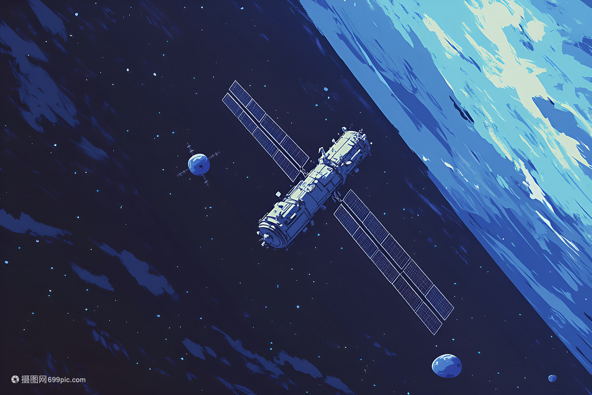 第4张 星轨尽头的卫星:插画中的静谧科技感