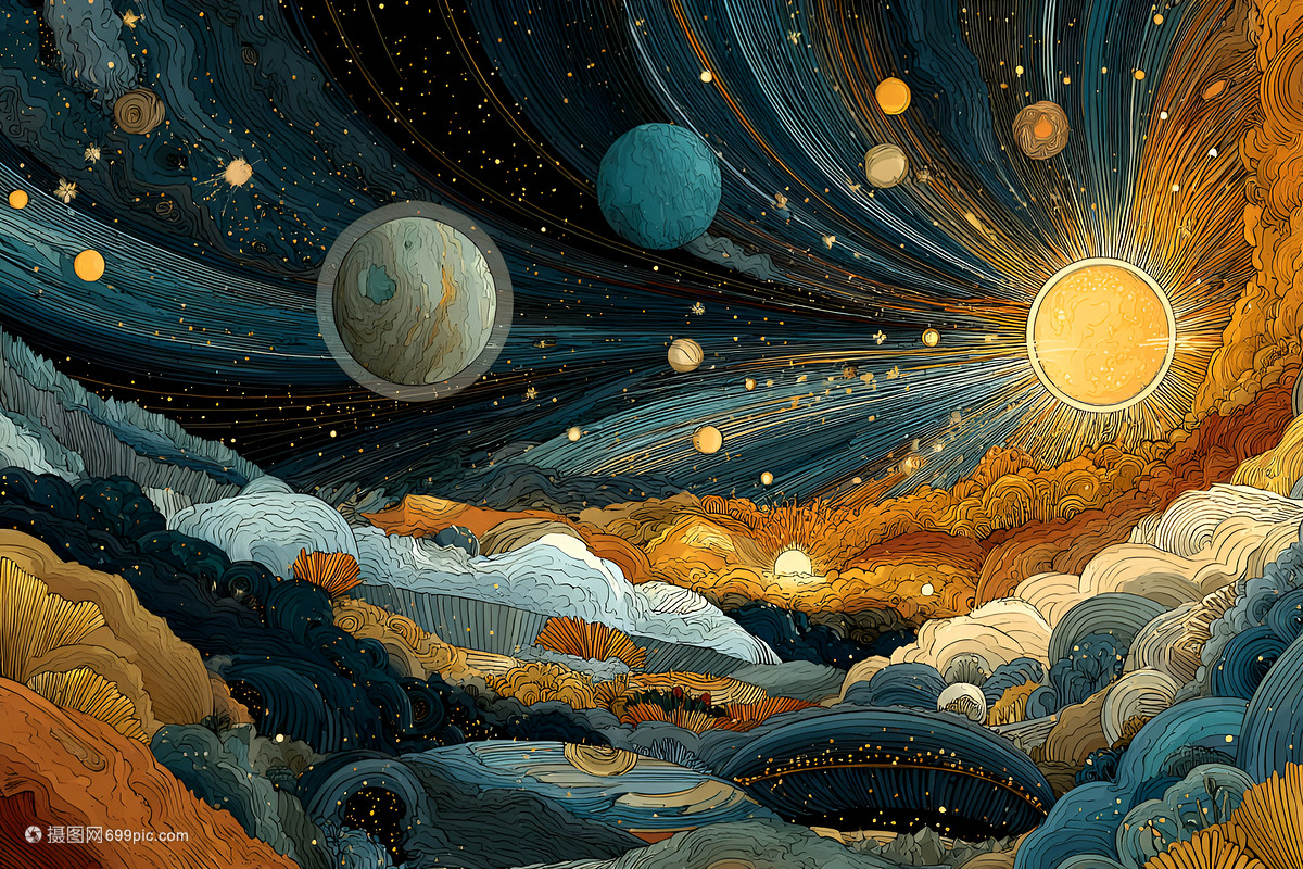 图片核心元素表达:这张图片的主题是:卫星的'不完美'星图:插画师的草稿笔记、宇宙探索中的行星与恒星,图片中包含的元素有:不完美星图 草稿笔记 手绘科技