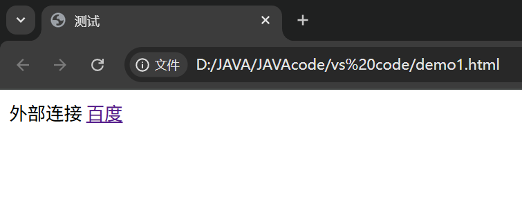 此时这里就是一个链接可以点击进入对应的页面,这里是百度的页面点击就会进入百度页面