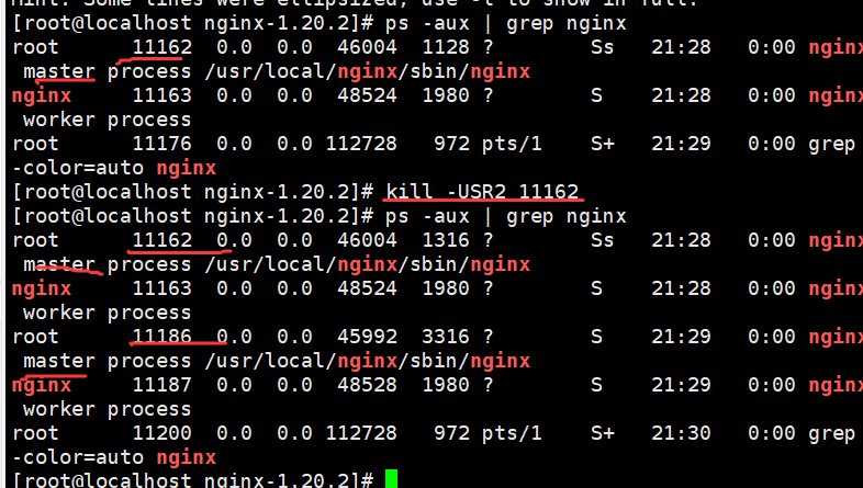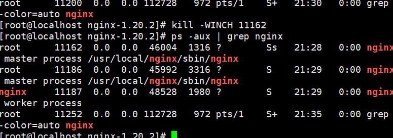 kill -s HUP 旧主进程PID(如 11162)