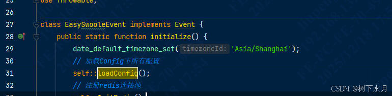 在EasySwooleEvent.php 文件中 加载配置目录 如下图所示: