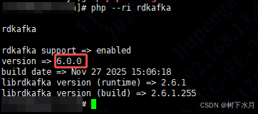 编译好后,修改php.ini 将rdkafka.so 添加到配置中,重启php 运行如下命令,看看是否扩展生效。