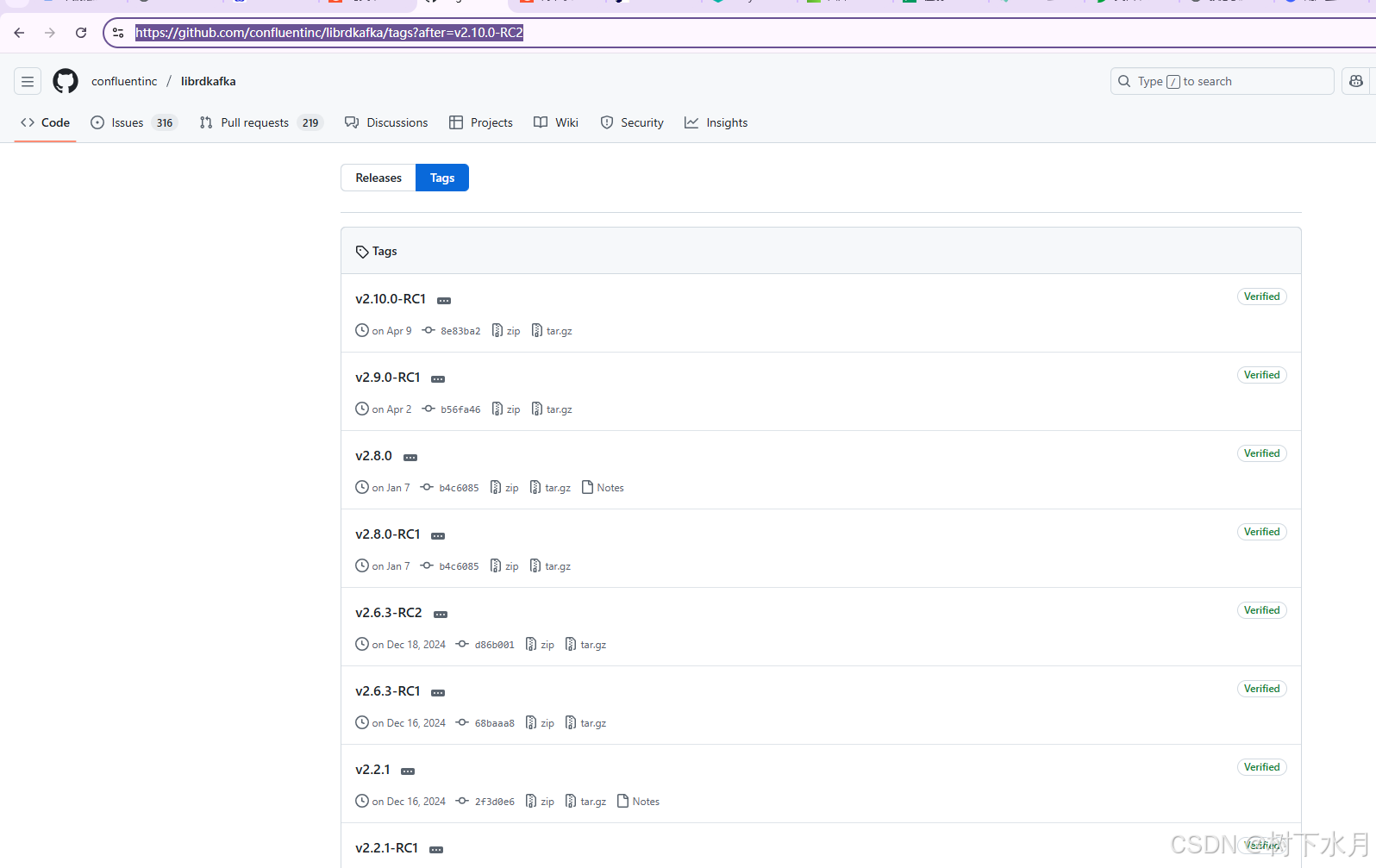 https://github.com/confluentinc/librdkafka/tags?after=v2.10.0-RC2
