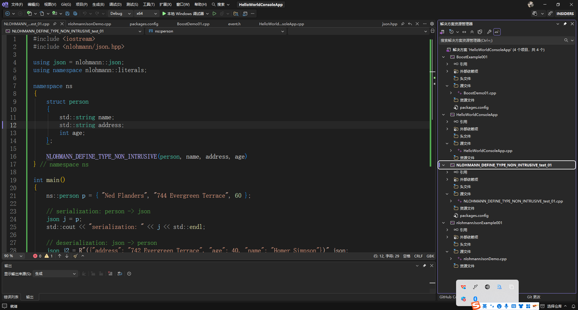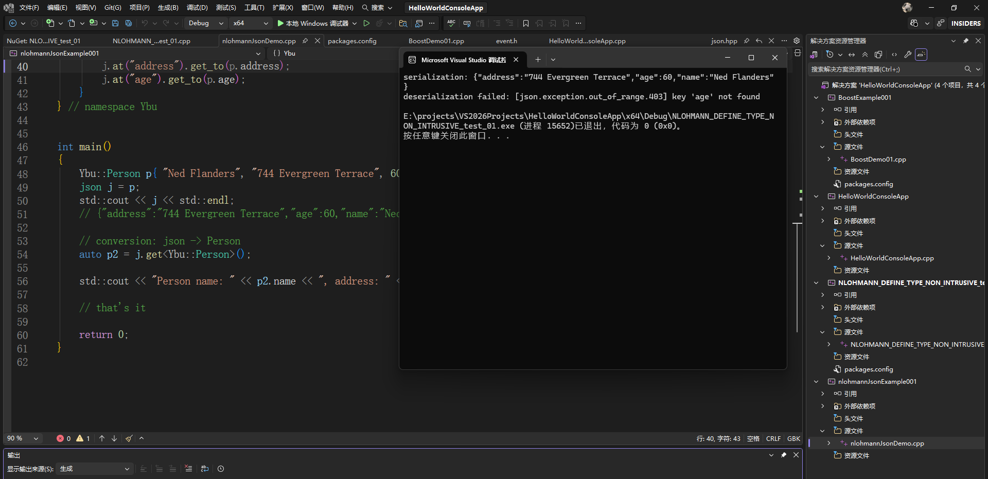 对应的C++控制台源代码文件nlohmannJsonDemo.cpp内容如下: