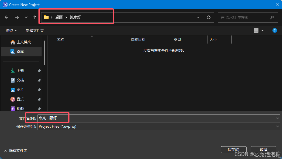 2.上面框是该项目存储路径,下面框是该项目文件名
