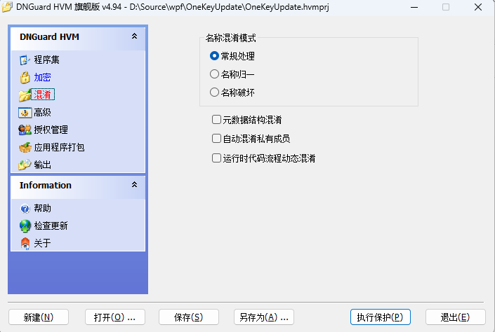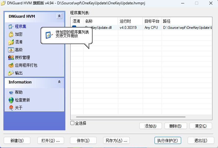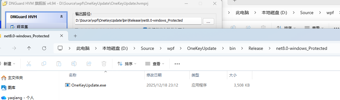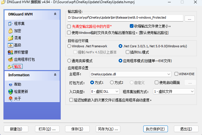 - 配置完成后,点击"执行保护"按钮,DNGuard将开始加密过程。加密完成后,您将在指定输出路径找到加密后的单一EXE文件。