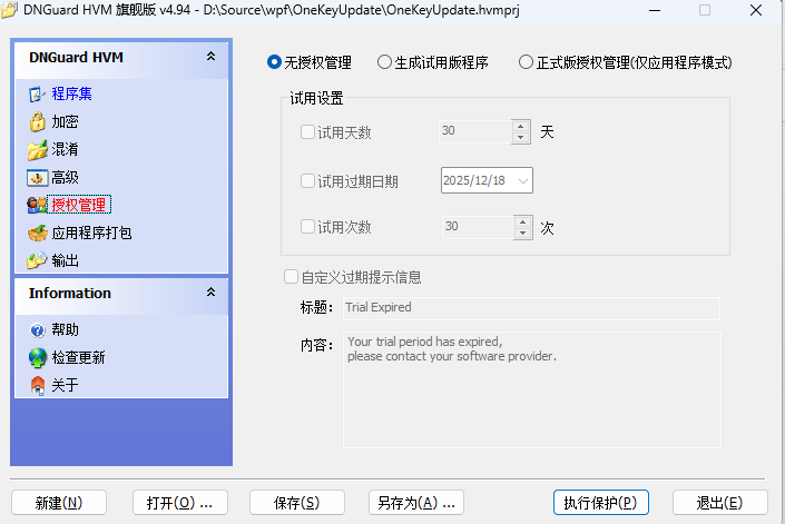 - 如果您希望对程序进行试用期限制,可以在"试用管理"中进行配置。您可以设置试用天数和试用次数限制,确保软件不会被无限期使用。