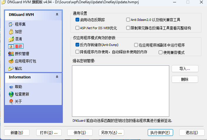 - 在"高级"设置中,您可以启用一些额外的保护,如反调试 和防Dump 。这些选项将帮助保护您的程序免受调试和内存转储攻击。
