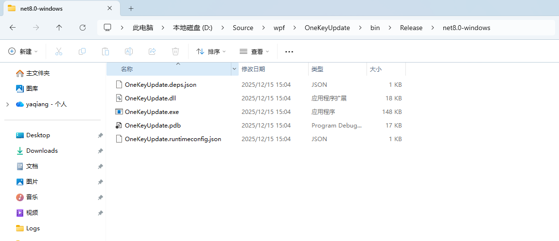OneKeyUpdate.exe文件。这个文件就是已经加密并打包成单一EXE的C# .NET Core程序。